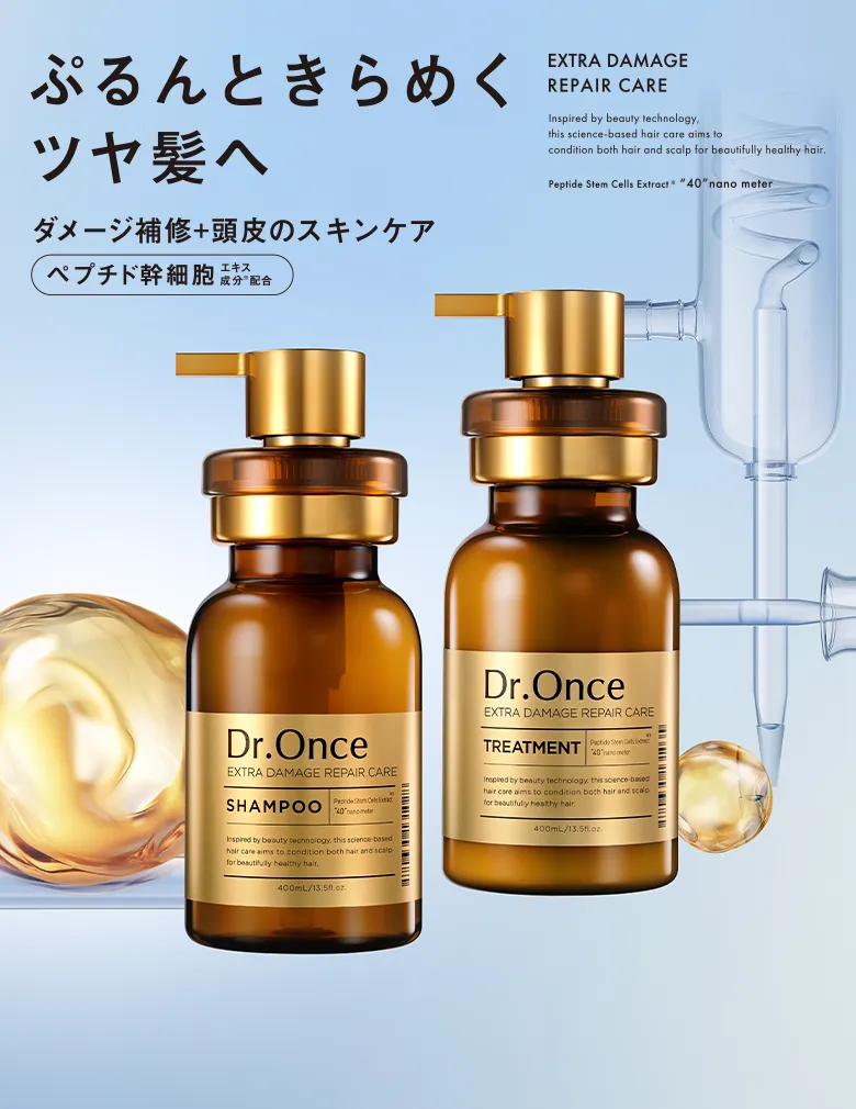 『ペプチド幹細胞エキス成分*1』&『ダメージリペアケア成分*2』配合 アミノ酸系吸着補修成分*6がパサつきを抑え柔軟な髪に、また熱のチカラを利用し、ダメージを補修するメドウフォーム-δ-ラクトンを配合したヒートプロテクト成分*7がツヤのある髪に導きます。さらには頭皮に直接塗布することで頭皮ケアまで!